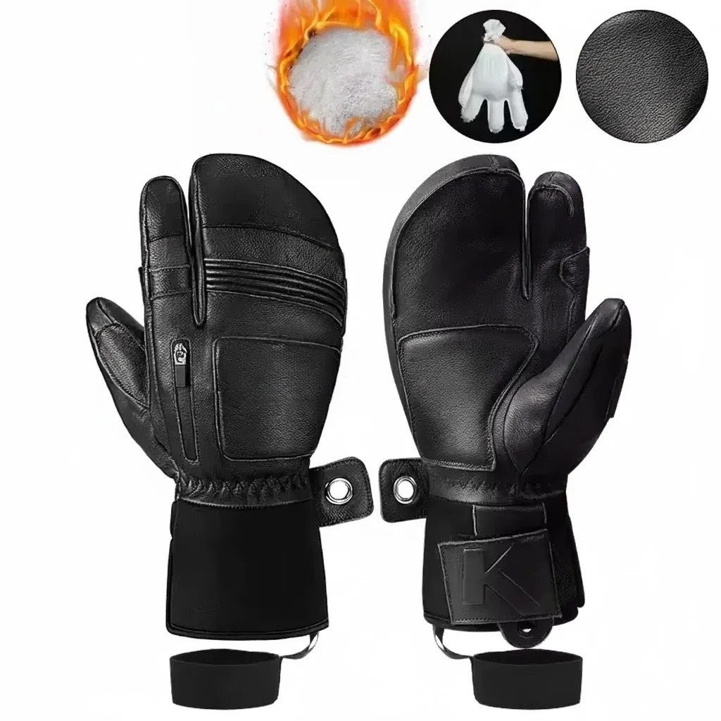 Waterproof Goatskin Leather Winter Ski Gloves for Men